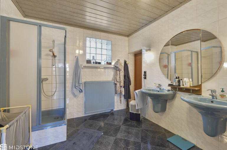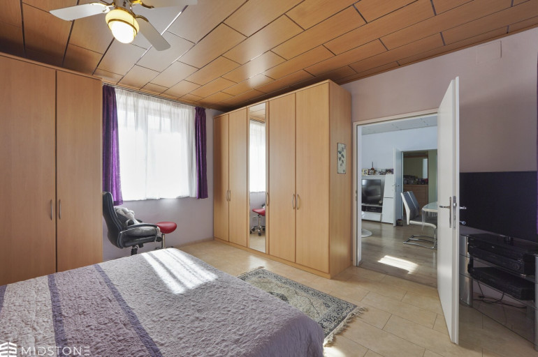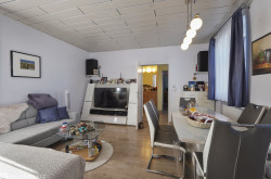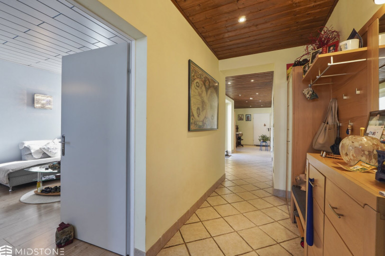 Das bestehende Wohnhaus mit rund 125 m² Wohnfläche wurde bis zuletzt bewohnt und laufend gepflegt. Vier gut geschnittene, helle Zimmer sorgen für eine familienfreundliche Raumstruktur. Die Küche wurde 2014 erneuert, Wohn- und Schlafzimmer 2012 modernisiert. Das Badezimmer verfügt über Badewanne und separate Dusche. Eine Zentralheizung sorgt für zuverlässige Wärme.