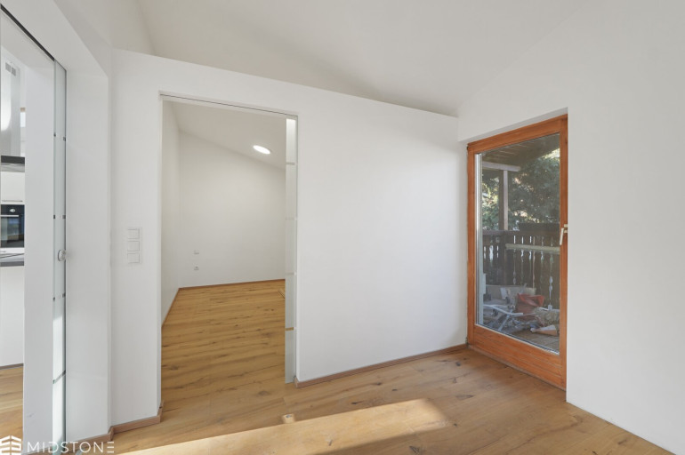 Ein besonderer Mehrwert dieser Immobilie ist der Außenbereich. Der eigene Garten, die Terrasse sowie ein Balkon schaffen mehrere Möglichkeiten, Zeit im Freien zu genießen und die ruhige Umgebung zu nutzen.