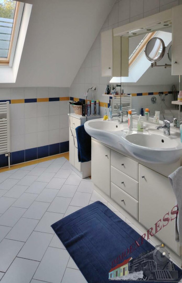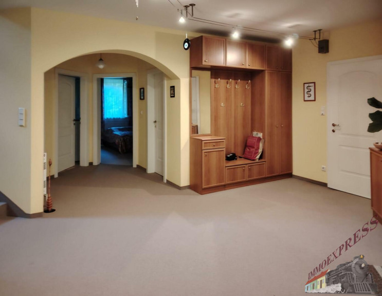 Besonders hervorzuheben ist der stilvolle Eingangsbereich mit Säulen und einer großen Terrasse. Das Haus ist komplett unterkellert und mit stabilen Außenwänden (38cm) und zusätzlich mit 12cm Vollwärmeschutz versehen. Der große Wohn/Essbereich bietet ca. 43m² Fläche und ist mit einem gesetzten Kachelofen ausgestattet. Geheizt wird mit einer Gaszentralheizung und dem Kachelofen.