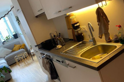 Die voll ausgestattete Einbauküche macht das Kochen zum Vergnügen und bietet ausreichend Platz für alle kulinarischen Abenteuer. Das Badezimmer ist mit einer modernen Dusche ausgestattet und verspricht einen erfrischenden Start in den Tag.