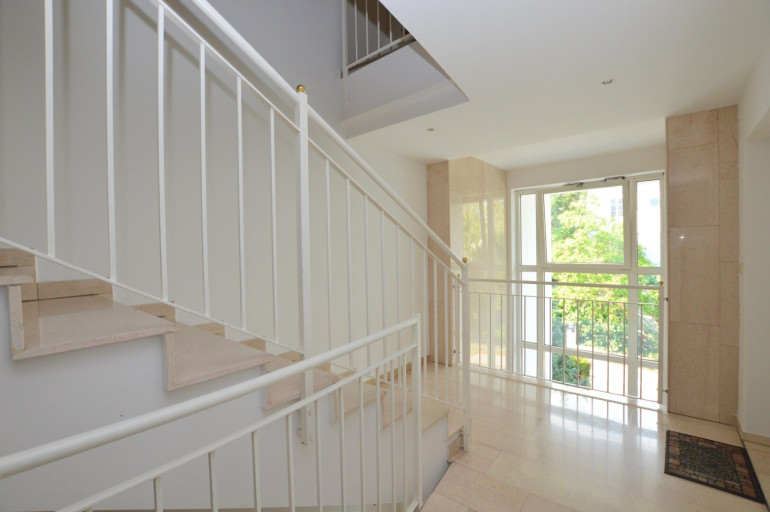 Das Schlafzimmer ist hell, ruhig und großzügig dimensioniert. Es bietet ausreichend Platz für ein großes Bett sowie Schranklösungen. Auch hier unterstreicht die grüne Umgebung den hohen Wohnkomfort.