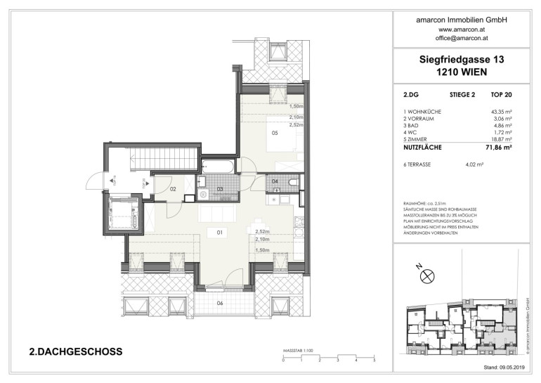 Mit einer Wohnfläche von ca. 71,86 m² sowie einer gemütlichen Terrasse mit 4,02 m² bietet die Wohnung ein durchdachtes Raumkonzept und ein helles, modernes Wohnambiente. Das Gebäude verfügt über einen modernen Lift, wodurch die Wohnung barrierefrei erreichbar ist.