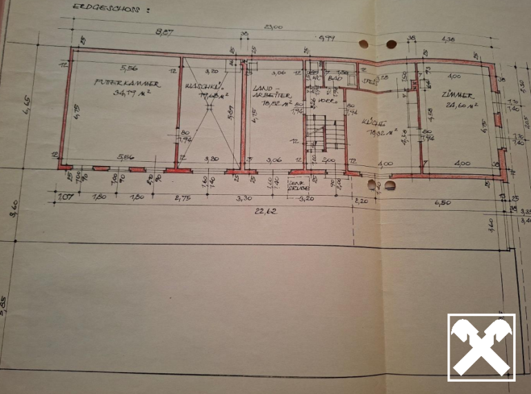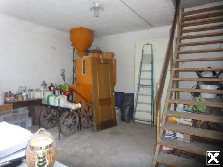 Der Hof umfasst zwei Wohnbereiche, mehrere Wirtschafts- und Nebenräume, eine großzügige Maschinenhalle/Garage sowie einen kleinen Stall.