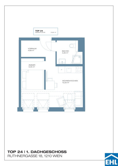 Die Ruthnergasse im 21. Wiener Gemeindebezirk verbindet ruhiges Wohnen mit guter Infrastruktur. Die S-Bahn-Station Wien Siemensstraße sowie der Verkehrsknoten Floridsdorf mit U6 und S-Bahn sorgen für eine schnelle Anbindung in die Wiener Innenstadt. Einkaufsmöglichkeiten, Gastronomie und Freizeitangebote befinden sich im direkten Umfeld, während nahegelegene Grünflächen zusätzliche Erholungsmöglichkeiten bieten. Dadurch entsteht eine attraktive Wohnlage mit hoher Lebensqualität und nachhaltigem Vermietungspotenzial.