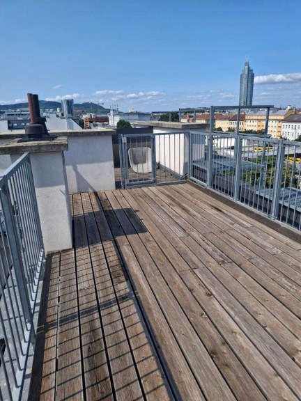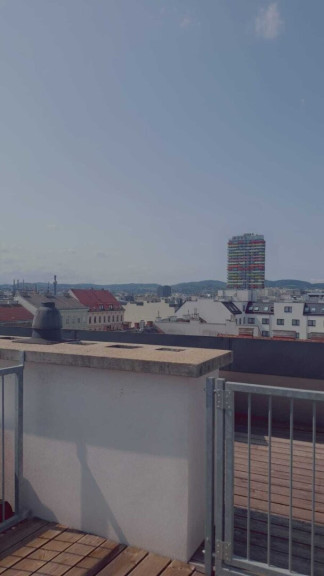 Die zur Wohnung gehörende Terrasse begehen Sie ebenfalls aus diesem Geschoß. Die Terrasse ist besonders für heiße Tage zum Entspannen geeignet und erweitert praktisch ihren Wohnraum um ein außenliegendes Wohnzimmer. Das Highlight der Wohnung ist mit Sicherheit die zweite Terrasse, die Sie über eine Stiege von der unteren Terrasse aus erreichen. Hier steht dem Rundumblick über Wien nichts mehr im Wege.