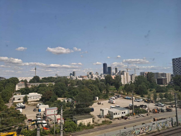 Die zu verkaufende Wohnung betreten Sie durch ein Vorzimmer, von dem aus Sie in die separate Toilette und in das sehr schöne Bad gelangen. Am Ende des Ganges öffnet sich ein herrliches Wohnzimmer mit integrierter Küche. Dieser wunderbare Raum bietet durch seine Größe wunderbar die Gelegenheit, mit Freunden ein gemütliches Essen auszurichten oder einfach nur geruhsame Stunden auf seinem Sofa zu verbringen - beides mit einem wunderbaren Blick über Wien. Der Raum ist durch seine großzügigen Fensterflächen nicht nur sehr hell, sondern hier gehen Außen- und Innenbereich