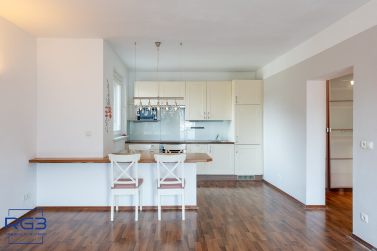 Sie betreten die Wohnung über den Vorraum. Gleich rechts befindet sich zuerst das separate WC, daneben das Badezimmer mit Dusche. Links vom Eingang liegt das Schlafzimmer, ein gut geschnittener, ruhiger Raum mit angenehmer Größe. Geradeaus gelangen Sie in das großzügige Wohnzimmer, das den zentralen Bereich der Wohnung bildet. Der Raum ist hell und offen gestaltet und lässt sich vielseitig einrichten. Rechts anschließend befindet sich die Küche als eigener, gut integrierter Bereich.