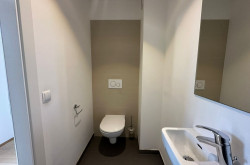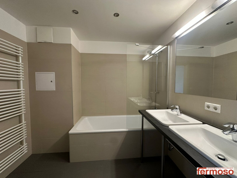 Das moderne Badezimmer verfügt über eine Badewanne mit WC, zusätzlich gibt es eine separate Toilette – ideal für mehr Flexibilität im Alltag. Die praktische Raumaufteilung schafft eine einladende Atmosphäre, in der Sie sich sofort wohlfühlen werden.