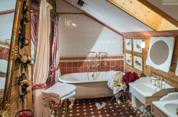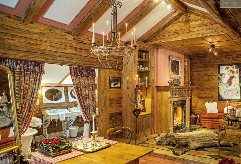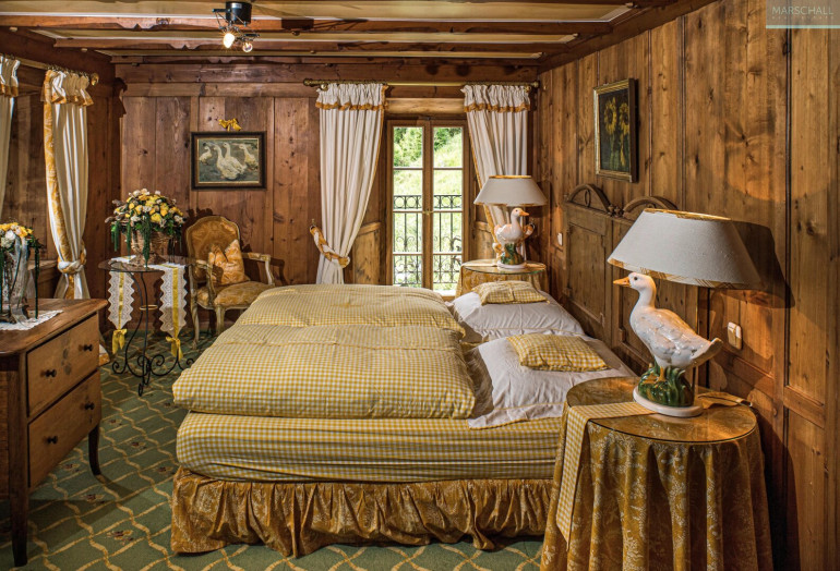 Das Ober- sowie Dachgeschoß beherbergt zwei großzügige Master-Suiten inklusive Wohnbereich mit offenem Kamin, drei Junior-Suiten sowie weitere fünf Gästezimmer – allesamt mit Bädern en suite.