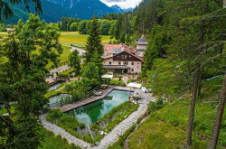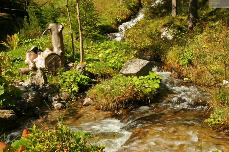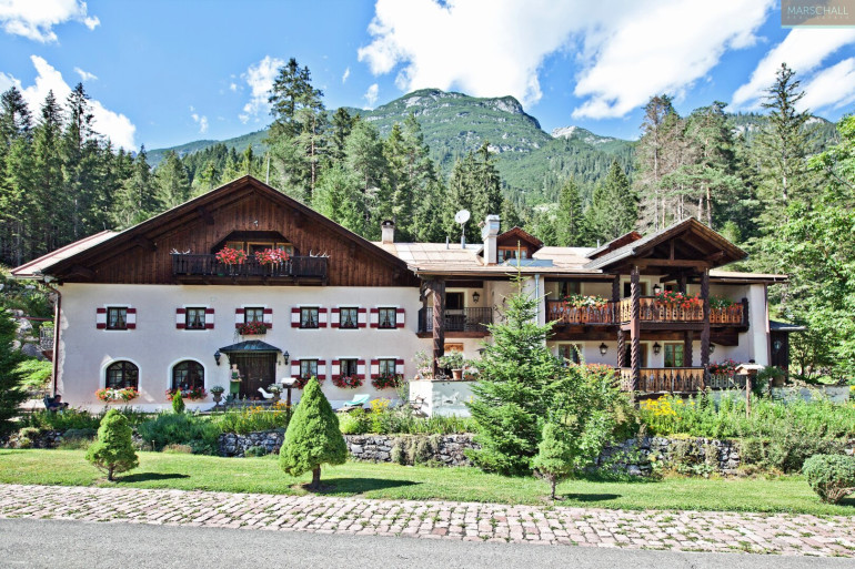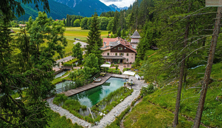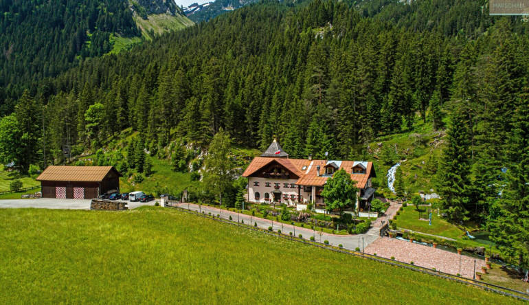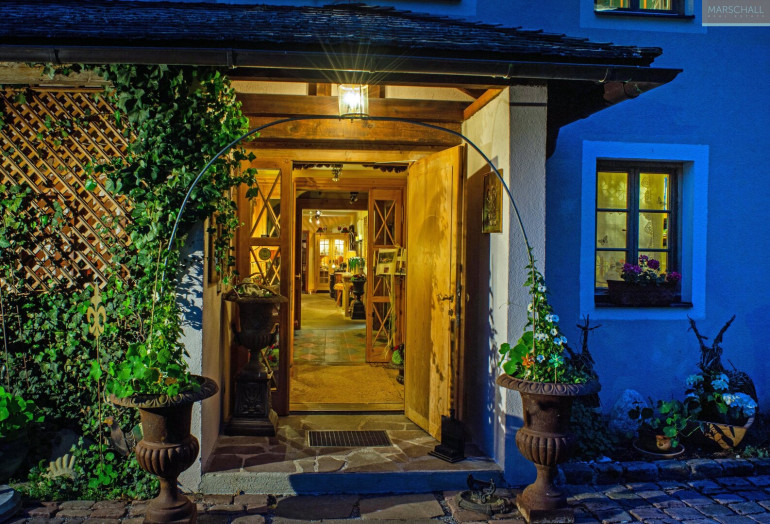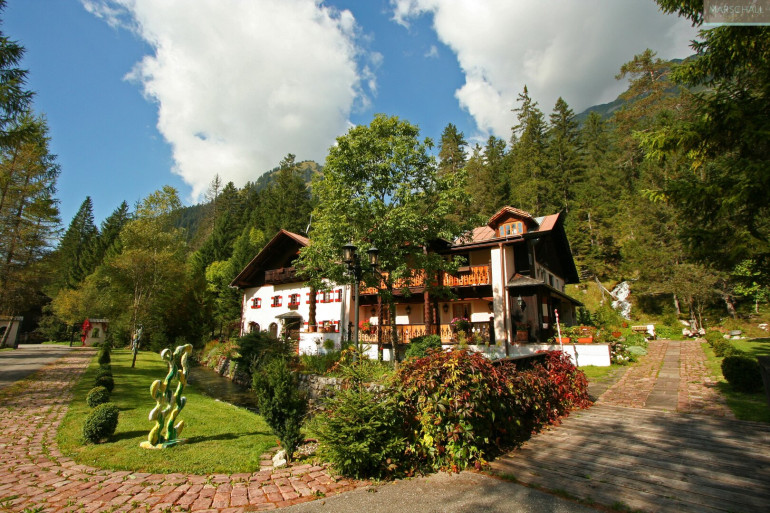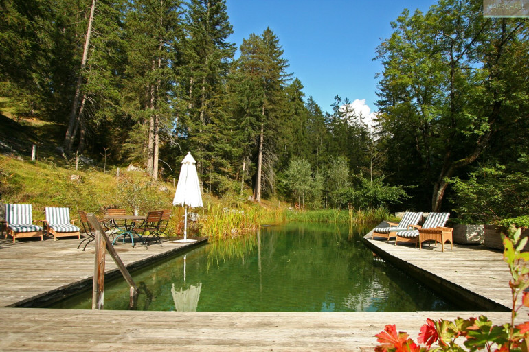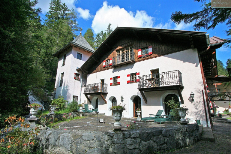 „Wo der Wildbach rauscht“ – so lässt sich das Gesamtensemble mit seiner rund 7.978 m² großen Gartenlandschaft, dem imposanten Haupthaus und seinen Außenanlagen treffend beschreiben. Das Wasser gehört von alters her zu diesem Anwesen; durchquert und umrahmt wird das Grundstück vom einstigen Mühlbach, dem Doserbach und von vier weiteren Wildbächen. Idyllische Ruheplätze sowie ein Schwimmbiotop mit großzügiger Sonnenterrasse, ein Forellenteich sowie urtümliche Bergwälder bilden den Rahmen.