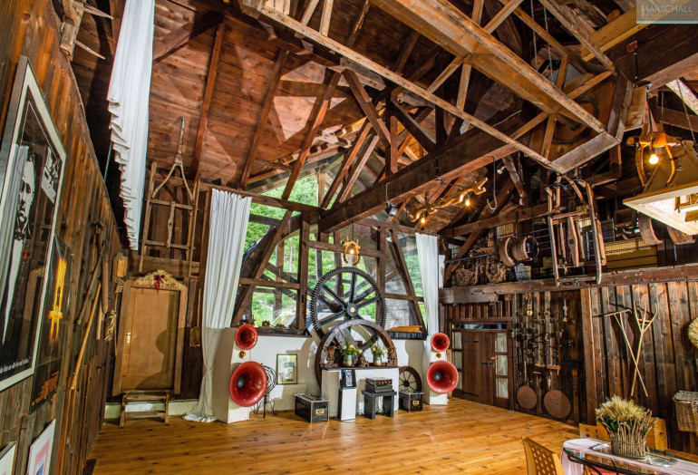 Vor dem klassischen Einfahrtstor wurde die einzigartige Mühle und ehemalige Remise in eine multifunktionale Tagungs- und Partylocation umgebaut – mit einem wasserbetriebenen Mühlrad, Kino sowie Dancefloor. Weitere Räumlichkeiten stehen dort noch für eine Küche, Atelier oder sonstige individuelle Verwendung zur Verfügung. 2 Garagenplätze sind auch vorhanden.