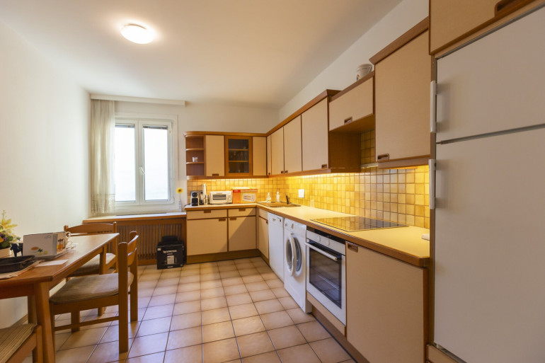 Fliesen, Parkett, Gas, Zentralheizung, Einbauküche, Personenaufzug, Badewanne