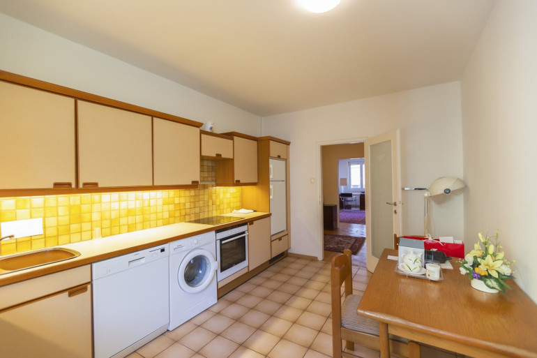 Wohnzimmer, Schlafzimmer, Arbeitszimmer mit Zugang zur Loggia, Kinderzimmer, separate Einbauküche mit Essplatz, zentrales Vorzimmer,