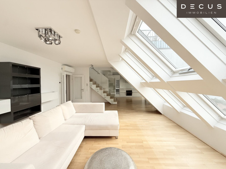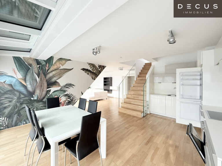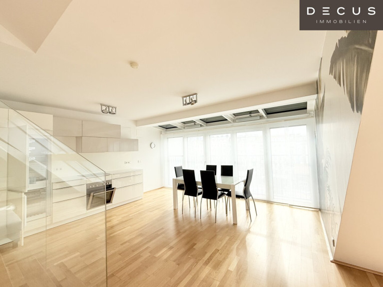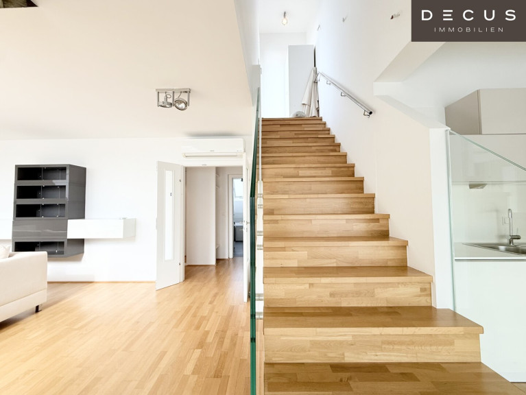 Die Wohnung erstreckt sich über zwei Ebenen und überzeugt durch ihre großzügige Raumaufteilung, helle Wohnräume und eine traumhafte Dachterrasse mit beeindruckendem Blick über Wien.