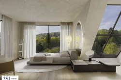 Die Architektur versteht sich als Haltung. Die Erschließung erfolgt von oben, was für eine Hanglage bewusst ungewöhnlich gewählt wurde. Dieses Konzept ist ein klares Statement für Privatheit, Ruhe und Exklusivität. Elf individuelle Wohneinheiten entfalten sich über mehrere Ebenen, jede mit eigener Identität und sorgfältig kuratiertem Ausblick. Durch die versetzte Höhenstaffelung entstehen Panoramaachsen, die Licht, Landschaft und Stadt miteinander verbinden. Großzügige Glasflächen öffnen den Wohnraum ins Freie und lassen Tageslicht tief in die Räume fließen. Terrassen werden zu erweiterten Wohnlandschaften, Gärten zu persönlichen Rückzugsorten. Innen- und Außenraum verschmelzen zu einem atmosphärischen Ganzen, das Weite und Geborgenheit zugleich vermittelt.