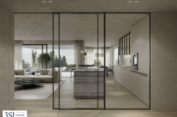 - Rahmenlose Schiebefenster mit 3-Scheiben-Isolierglas und Sonnenschutzglas