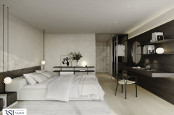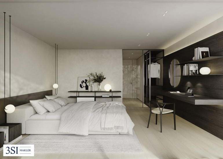 Im Zusammenspiel klarer Linien und präzise gesetzter Details entsteht die architektonische Qualität von THE SUPERIOR. Jede Entscheidung folgt einem übergeordneten Prinzip: Reduktion, Dauerhaftigkeit und Materialität. Die Innenräume überzeugen durch sorgfältig ausgewählte Oberflächen, die Ruhe ausstrahlen und zugleich Tiefe entwickeln. Eichenparkett bringt natürliche Wärme in die Räume, während großformatige Verglasungen Licht und Weitblick selbstverständlich integrieren. Auch in den Bädern setzt sich diese Klarheit fort. Hochwertiges Feinsteinzeug trifft auf fein ausgeführte Sanitärobjekte und schafft eine Atmosphäre, die zurückhaltend und zugleich anspruchsvoll wirkt. Technik versteht sich hier als diskrete Unterstützung. Split-Kühlgeräte sorgen für angenehme Temperaturen, ohne in Erscheinung zu treten. Elektrisch gesteuerte Beschattungselemente regulieren Licht und Atmosphäre im Hintergrund, während die Video-Gegensprechanlage Sicherheit und Privatsphäre gewährleistet.