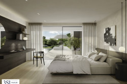 Im Zusammenspiel klarer Linien und präzise gesetzter Details entsteht die architektonische Qualität von THE SUPERIOR. Jede Entscheidung folgt einem übergeordneten Prinzip: Reduktion, Dauerhaftigkeit und Materialität. Die Innenräume überzeugen durch sorgfältig ausgewählte Oberflächen, die Ruhe ausstrahlen und zugleich Tiefe entwickeln. Eichenparkett bringt natürliche Wärme in die Räume, während großformatige Verglasungen Licht und Weitblick selbstverständlich integrieren. Auch in den Bädern setzt sich diese Klarheit fort. Hochwertiges Feinsteinzeug trifft auf fein ausgeführte Sanitärobjekte und schafft eine Atmosphäre, die zurückhaltend und zugleich anspruchsvoll wirkt. Technik versteht sich hier als diskrete Unterstützung. Split-Kühlgeräte sorgen für angenehme Temperaturen, ohne in Erscheinung zu treten. Elektrisch gesteuerte Beschattungselemente regulieren Licht und Atmosphäre im Hintergrund, während die Video-Gegensprechanlage Sicherheit und Privatsphäre gewährleistet.