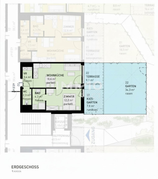- Jede Wohnung mit privater Freifläche (Loggia, Balkon, Terrasse, Eigengarten)