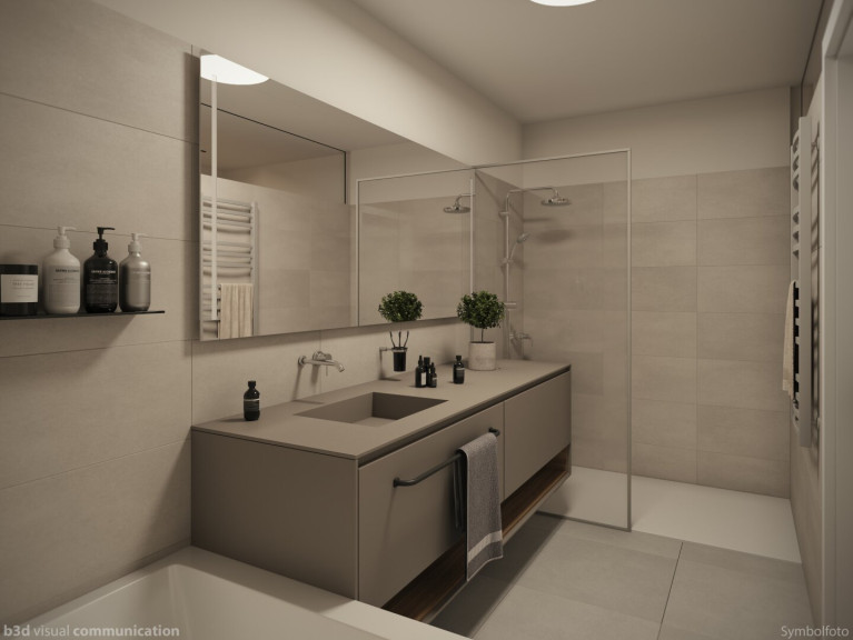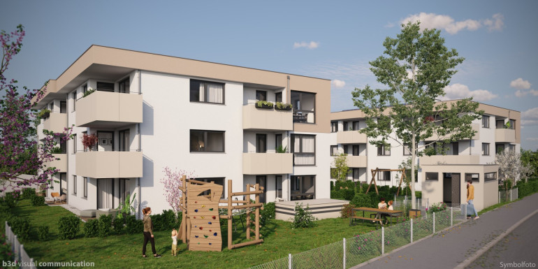 Alle Wohnungen sind ausgestattet gem. Bau- und Ausstattungsbeschreibung (ohne Möblierung od. sonstiger eingezeichneter Einrichtungen). Alle grafischen Darstellungen sind symbolhaft (Symbolgrafik) zu verstehen und geben die Wirklichkeit nur andeutungsweise wieder - die tatsächliche Ausführung kann aufgrund von behördlichen Auflagen und technischen Erfordernissen maßgeblich abweichen. Druckfehler, Änderungen und Irrtümer vorbehalten!