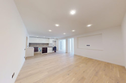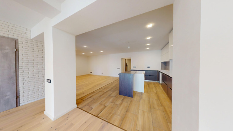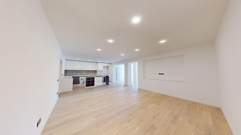 Die Wohnung verfügt über drei Schlafzimmer sowie ein großzügiges Wohn- und Esszimmer mit moderner Einbauküche. Die Arbeitsfläche und die Küchengeräte können vom Käufer individuell gewählt und nach eigenem Geschmack gestaltet werden.