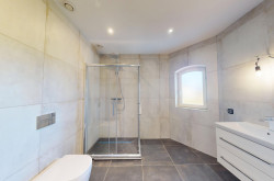 Das Raumangebot wird durch ein Badezimmer mit Dusche und WC sowie eine separate Toilette mit Dusche ergänzt. Direkt an das Badezimmer grenzt ein zusätzlicher Raum im ursprünglichen Zustand, der sich ideal als Badezimmererweiterung oder Saunabereich eignet.
