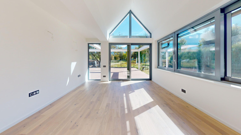 Großzügige Schiebetüre mit großer Fensterfläche zur Terrasse