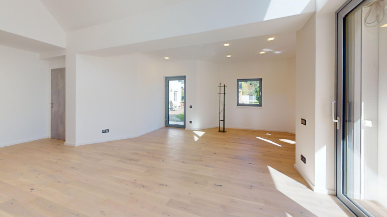 Die Wohnung wurde 2025 umfassend umgebaut und grundsaniert – sämtliche Leitungen sowie Fenster wurden erneuert, ebenso die Wohnungstür. Eine große bodentiefe Schiebetür öffnet den Wohnbereich zur Terrasse hin und sorgt für ein helles, offenes Wohngefühl.