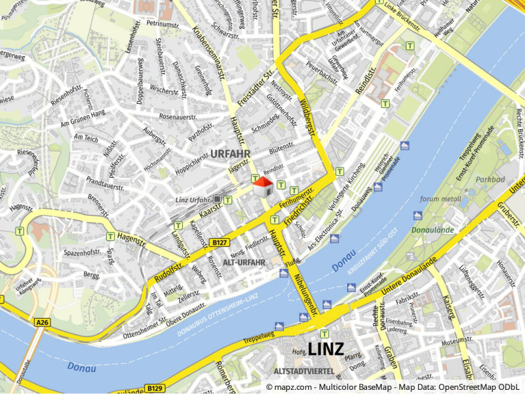 Das Donaucenter liegt zentral im Linzer Stadtteil Urfahr an der Hauptstraße, einer belebten Einkaufs- und Geschäftsstraße. In unmittelbarer Umgebung befinden sich zahlreiche Einzelhandelsgeschäfte, Gastronomiebetriebe und Dienstleister. Die Straßenbahnlinien 1, 2, 3 und 4 sowie mehrere Buslinien halten in direkter Nähe und bieten eine schnelle Anbindung an die Innenstadt. Für den Individualverkehr ist das Donaucenter über die A7 in nur 10 Minuten erreichbar, Parkmöglichkeiten finden sich in der Umgebung sowie in der nahegelegenen Lentia-City-Tiefgarage. Durch diese zentrale Lage und die ausgezeichnete Verkehrsanbindung stellt das Donaucenter einen attraktiven Standort für gewerbliche Nutzungen dar.Beschreibung der Immobilie