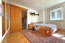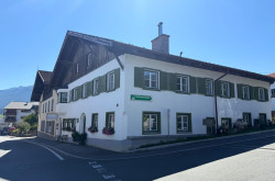 Das historische Gebäude, das im Jahr 1990 zu Wohnungen umgebaut wurde, strahlt mit seiner malerischen Fassade, den grünen Fensterläden und den liebevollen Details eine warme, einladende Atmosphäre aus.