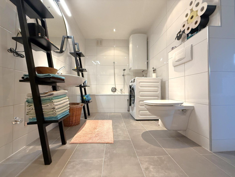 Ein einladender Eingangsbereich führt in das helle Schlafzimmer, ein modernes Badezimmer mit Badewanne und Waschmaschinenanschluss sorgt für Komfort, und der offene Wohn-Essbereich mit neuwertiger Einbauküche lädt zum Kochen, Genießen und Entspannen ein. Ein zusätzlicher Arbeits- oder Hobbybereich bietet Raum für Individualität – ideal für Homeoffice, Gäste oder Ihre persönlichen Hobbys.