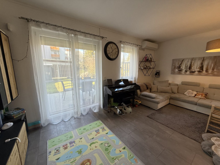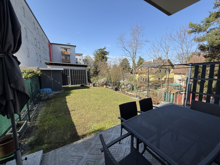 Wr. Neustadt - gepflegte Eigentumswohnung Nähe "Auge Gottes" - perfekt für Jungfamilien geeignet! Diese topausgestattete Wohnung (Air Condition, Kleinspeicherofen, Alarmanlage, elektrische Rollläden/Moskitoschutz, Bewässerungsanlage im Garten etc.) befindet sich im Erdgeschoß und weist eine Wohnfläche von ca 83 m2 und ca 60 m2 Eigengarten auf: Vorraum, Garderobe, Abstellraum, WC, Schlafzimmer, Kinderzimmer, Bad sowie ein großzügiger und teilmöblierter Wohn-Ess-Küchenbereich (Kaminofen/feste Brennstoffe im Wohnbereich). Teilweise, überdachte Terrasse. Ausgang in den Garten - Rasenroboter bzw. PV-Anlage am Gartenhausdach. Kellerabteil. Fahrradabstellraum. Heizung: Zentralheizung mittels Fernwärme/Kaminofen-feste Brennstoffe; Air-Condition. Anschlüsse: Wasser, Strom, Kanal, Tel., SAT-TV. Tiefgaragenplatz für einen PKW. NÖ-WBF in Höhe von ca 70.000,00 kann übernommen werden - Barkaufpreis: € 200.000,00 bzw. monatl. BK (incl. WBF-Rückzahlung und Garage) € 470,00.