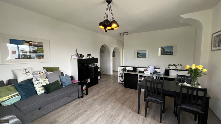 Die Wohnung erstreckt sich über zwei Ebenen und bietet großzügigen Raumkomfort sowie eine gelungene Verbindung von urbanem Wohnen und naturnahen Lebensstil. Im Untergeschoss befinden sich zwei helle, gut geschnittene Zimmer, die ideal als Schlafzimmer, Arbeitszimmer oder Gästezimmer genutzt werden können. Von hier aus gelangen Sie direkt auf die überdachte Terrasse und in den liebevoll gestalteten Garten (91 m²) – perfekt für entspannte Stunden im Freien, Grillabende oder Spielmöglichkeiten für Kinder.