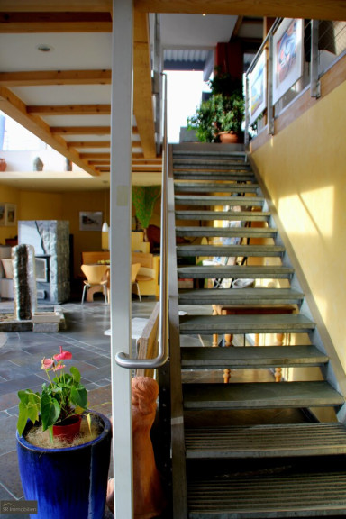Der Zugang zu den Räumlichkeiten erfolgt wahlweise über eine außenliegende Stiege oder über eine innenliegende Treppe.