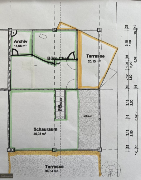 Im Eingangsbereich steht bei Bedarf ein Schauraum zur Präsentation firmenrelevanter Ausstellungsstücke zur Verfügung. In diesem Bereich befindet sich zudem eine Sanitäreinheit.