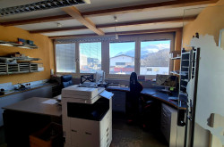 Das abgeschlossene Büro ermöglicht konzentriertes und ungestörtes Arbeiten im Hintergrund.