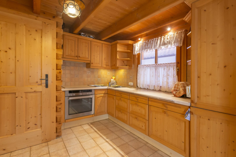 Wohnzimmer mit angrenzender Einbauküche und Zugang zur Terrasse und dem Garten, Bad mit Dusche, WC und Fenster, Vorzimmer, Abstellraum