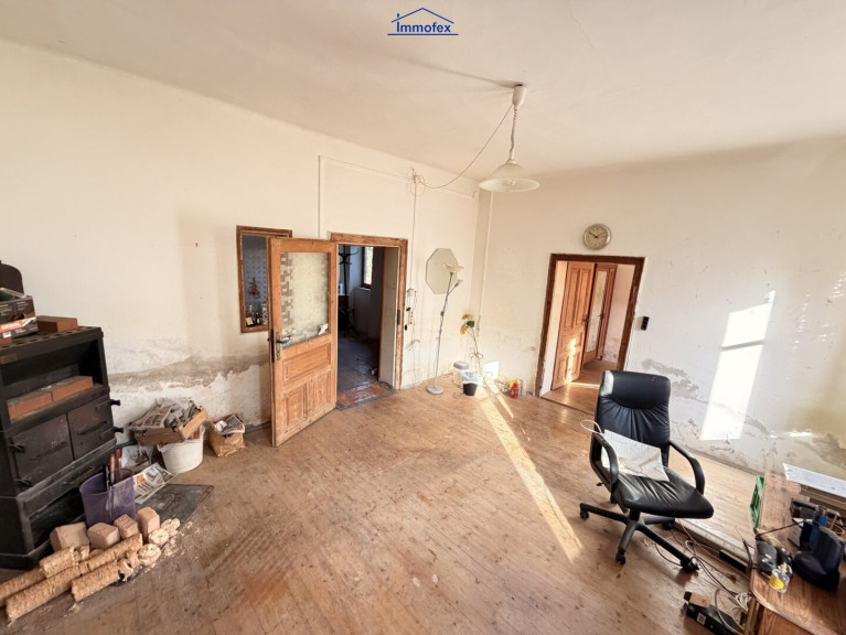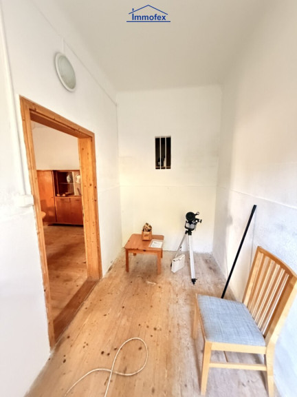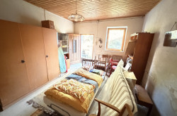 Im Haupttrakt sind 3,5 Räume und ein WC. Zu,- und Abwasser liegen schon in dem Trakt. Es gibt noch einen weiteren Raum, der im Moment nur von außen begehbar ist. So hätte man abzüglich Bad und Küche noch ausreichend Platz, um sich hier privat niederzulassen. Im Nebengebäude habe ich noch eine Werkstatt und ein Holzlager. Das kann man umbauen zum Wohnraum, oder eben Hobby und Freizeit hier unterbringen. Was mich in jedem Fall auszeichnet ist die Idylle und auch die Freiheit, sich hier in ländlicher Gegend mit viel Privatsphäre wohlfühlen zu können.