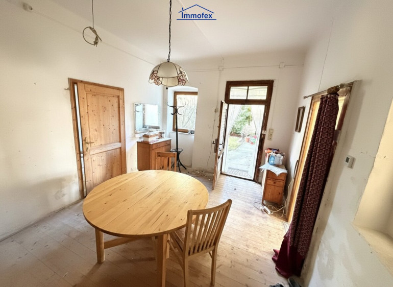 Nun erzähle ich ein wenig von mir. Wenn du durch das große hölzerne Hoftor kommst, dann biete ich dir schon eine gute Möglichkeit einen Blick in den Garten zu erhaschen. Stell dein Auto ab, nimm Platz auf dem Bankerl und komm einfach Zuhause an! Es gibt 2 Wohntrakte. Im kleinen, was früher vermutlich mal eine Art Ausgedinge gewesen ist, habe ich eine Küche, einen Abstellraum und ein Badezimmer. Hier könnte ich mir vorstellen, eine Art Büro, Praxis, energetische Behandlungen oder ähnliches unterzubringen. Garderobe, WC und Büro/Praxisraum wären umsetzbar.