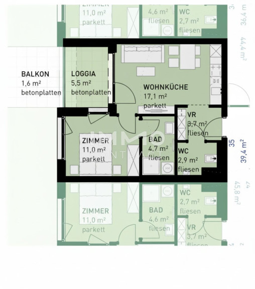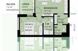 - Jede Wohnung mit privater Freifläche (Loggia, Balkon, Terrasse, Eigengarten)