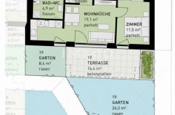 Bei Bedarf an mehr Wohnfläche berät das Vertriebsteam gern: Auf Wunsch lassen sich übereinanderliegende Einheiten zu einer Maisonette (4 Zimmer) verbinden oder nebeneinanderliegende Wohnungen zu größeren Einheiten zusammenlegen. Für Eigentümer besteht optional die Möglichkeit eines eigenen Gartenabteils; alle Gartenflächen werden mit Strom und Wasseranschluss versehen.