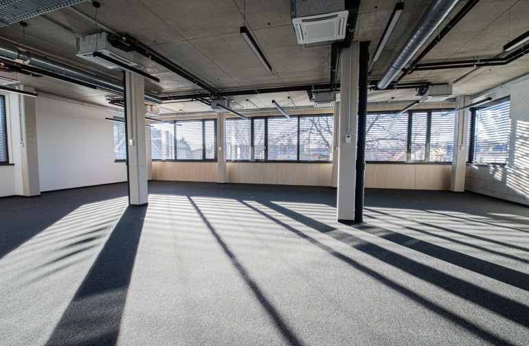 Die Büroflächen überzeugen durch durchdachte Raumlösungen, ausgezeichnete Verkehrsanbindung und verfügbare Parkmöglichkeiten. Kommunikationszonen und helle Aufenthaltsbereiche unterstreichen das offene Campuskonzept, das auf effiziente Ressourcennutzung und ein angenehmes Arbeitsklima setzt.