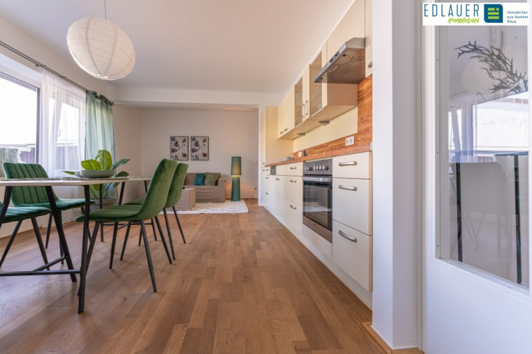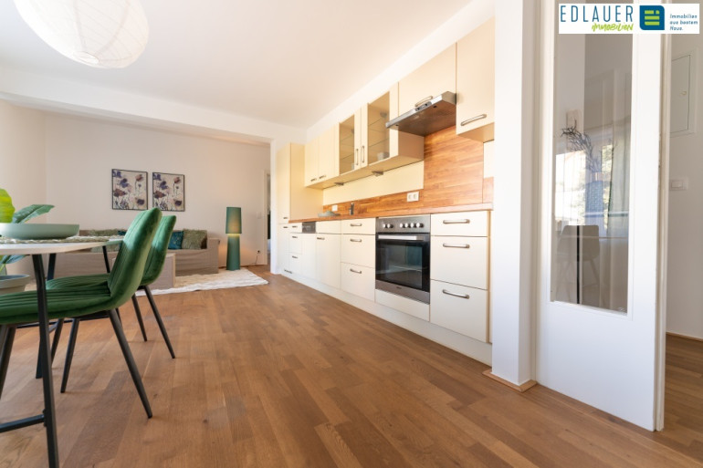 Die Wohnküche verfügt über eine große Fensterfront, welche die Wohnung lichtdurchflutet, hell und absolut freundlich macht. Die Sanitäreinrichtung ist neuwertig, modern und zeitgemäß. Auch die Küche befindet sich in einem neuwertigen Zustand und bietet Ihnen alles was Sie für den täglichen Bedarf benötigen.