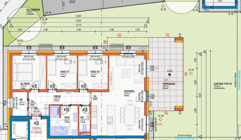 Die Gartenwohnung befindet sich im Erdgeschoss eines neu erbauten Gebäudes und besticht mit einer Gesamtfläche von 91,92m². Mit insgesamt vier Zimmern bietet sie ausreichend Platz für individuelle Gestaltungsmöglichkeiten und garantiert ein gemütliches Wohnambiente für Sie und Ihre Lieben. Der Erstbezug dieser Wohnung garantiert Ihnen eine moderne und hochwertige Ausstattung, die keine Wünsche offen lässt.