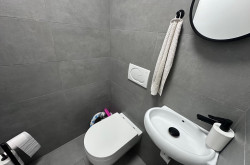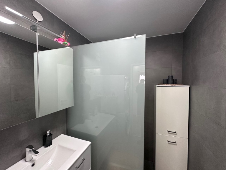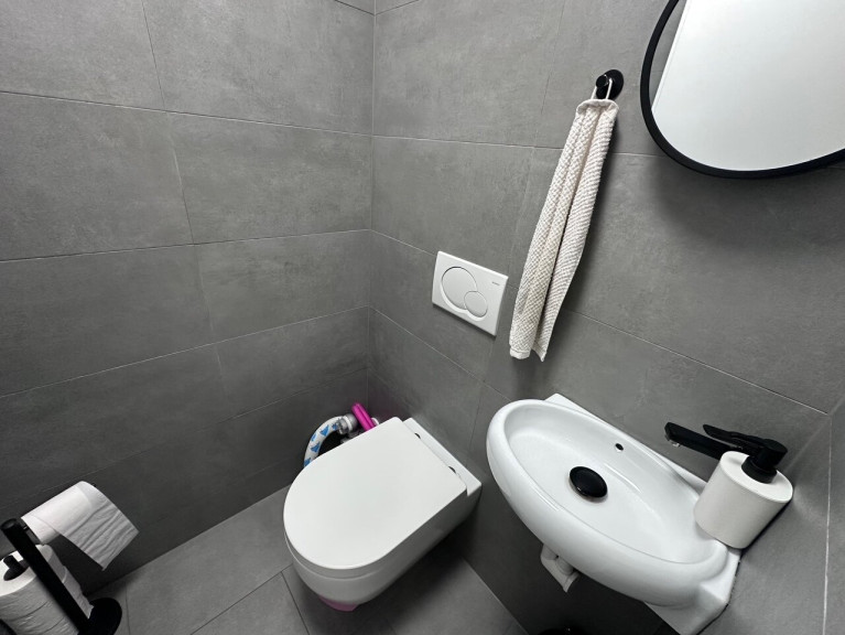 Die separate Küche ist vollständig eingerichtet und bietet echten Platz zum Kochen – nicht nur zum Aufwärmen. Das moderne Badezimmer mit Dusche und getrenntem WC ist fertig, zeitgemäß und alltagstauglich.