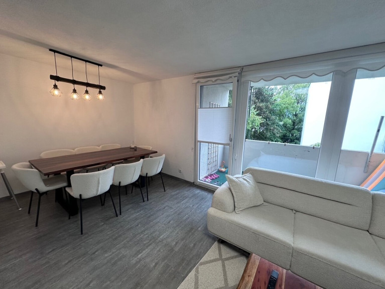 Zwei sonnige Loggien mit Südwest-Ausrichtung, großzügige ca. 93 m² mit durchdachtem Grundriss, komplett saniert 2021 – und eine Lage, die den Alltag spürbar leichter macht. Der Supermarkt liegt 150 Meter entfernt, der Bus direkt vor der Tür, der Bahnhof in fünf Gehminuten. Wer pendelt, weiß was das wert ist. Wer bleibt, auch.