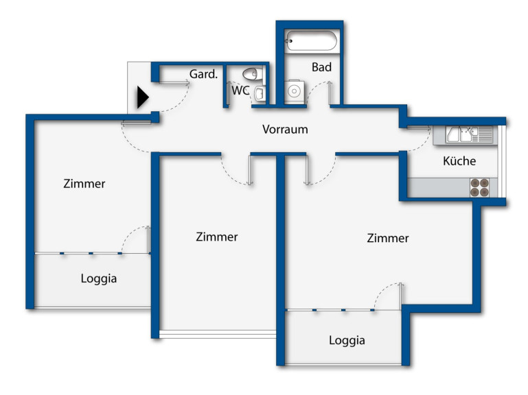 Die Wohnung wurde 2021 umfassend saniert. Kein Renovierungsstress, keine versteckten Baustellen – einfach einziehen und leben. Drei klar geschnittene Zimmer schaffen Flexibilität: Schlafzimmer, Arbeitsraum, Gästezimmer oder Kinderzimmer – der Grundriss passt sich Ihrem Leben an, nicht umgekehrt.