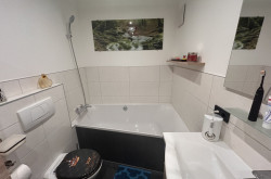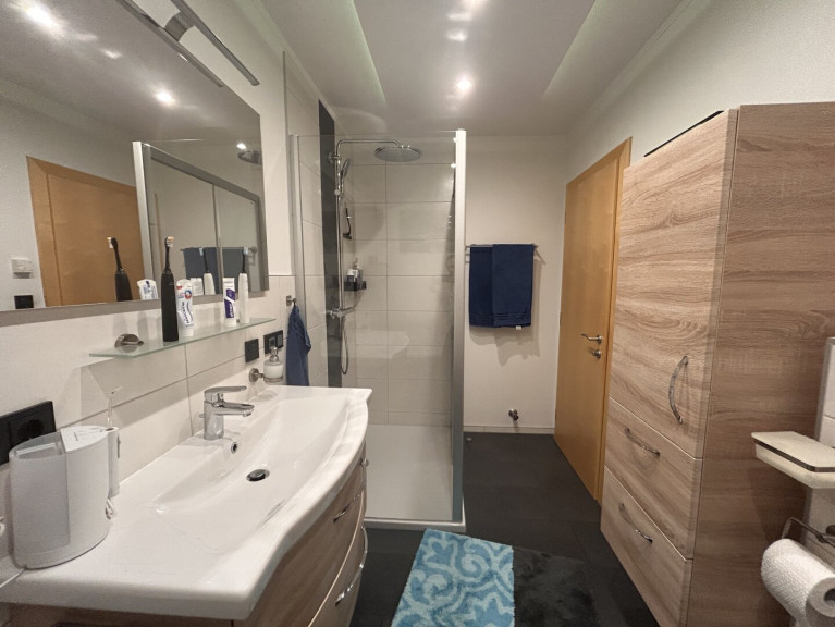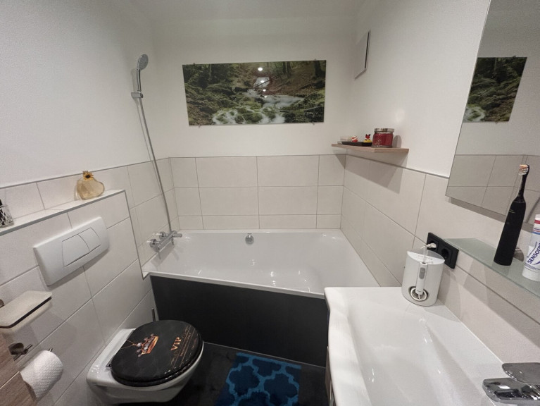 - Badezimmer komplett saniert 2015 – große Dusche, Trapezbadewanne, WC
