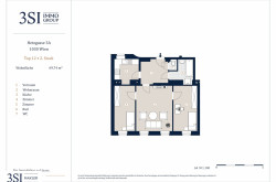 Das Wohnzimmer mit einer Fläche von knapp 22 m² bietet einen großzügigen Mittelpunkt der Wohnung und ausreichend Raum für eine komfortable Wohngestaltung. Zwei geräumige Schlafzimmer ermöglichen vielfältige Nutzungsmöglichkeiten und unterstreichen die Funktionalität des Grundrisses. Die Küche ist separat angeordnet und bietet eine klare Trennung vom Wohnbereich. Das Badezimmer ist mit einer Badewanne ausgestattet, das WC ist separat begehbar. Ein großer Vorraum erschließt sämtliche Räume und rundet das stimmige Raumkonzept ab.