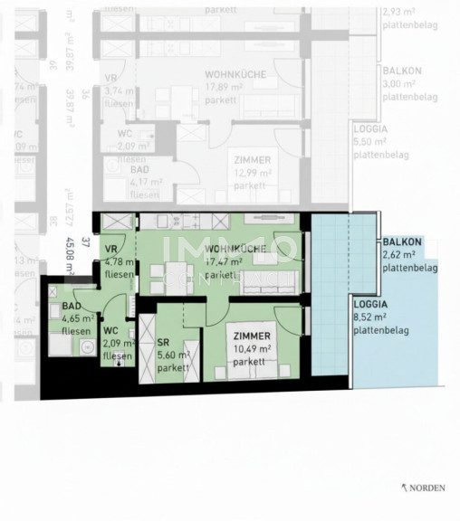 - Jede Wohnung mit privater Freifläche (Loggia, Balkon, Terrasse, Eigengarten)